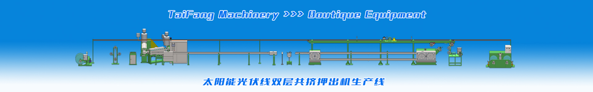適應(yīng)于生產(chǎn)太陽能光伏電纜、低煙無鹵料電纜、輻照電纜、XL-PE交聯(lián)聚乙烯電纜,主要有高速絞線機(jī)、雙層共擠及串聯(lián)生產(chǎn)線設(shè)備。